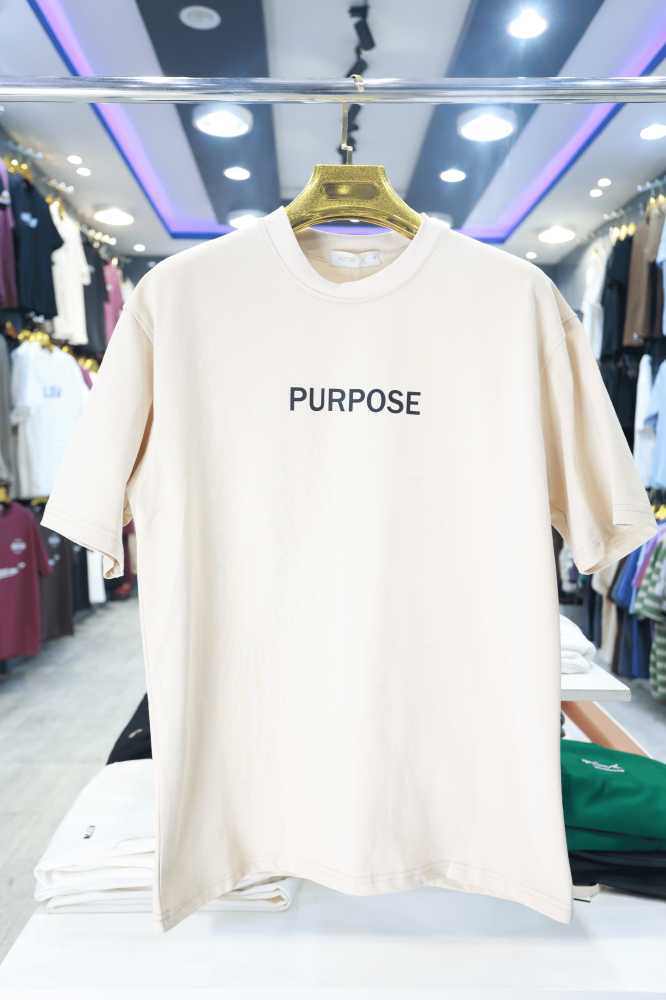 1. ما نوع القماش المستخدم في قميص Beige Purpose Oversized؟